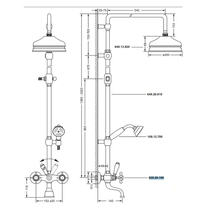 Jorger Serie 1909 Душевая стойка, настенная, верхний душ 20 см, смеситель, цвет: хром 649.20.810.000