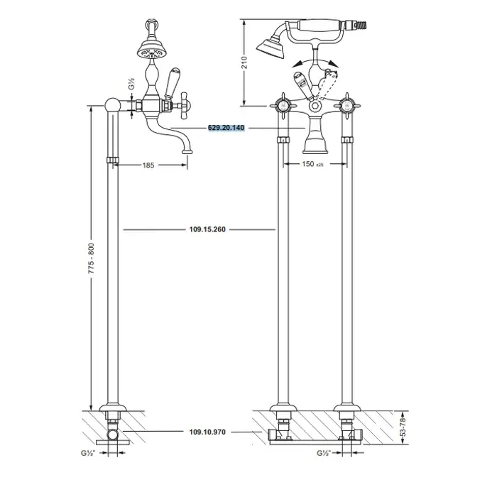 Jorger Serie 1909 Смеситель для ванны, напольный монтаж, цвет: хром 629.20.140.000