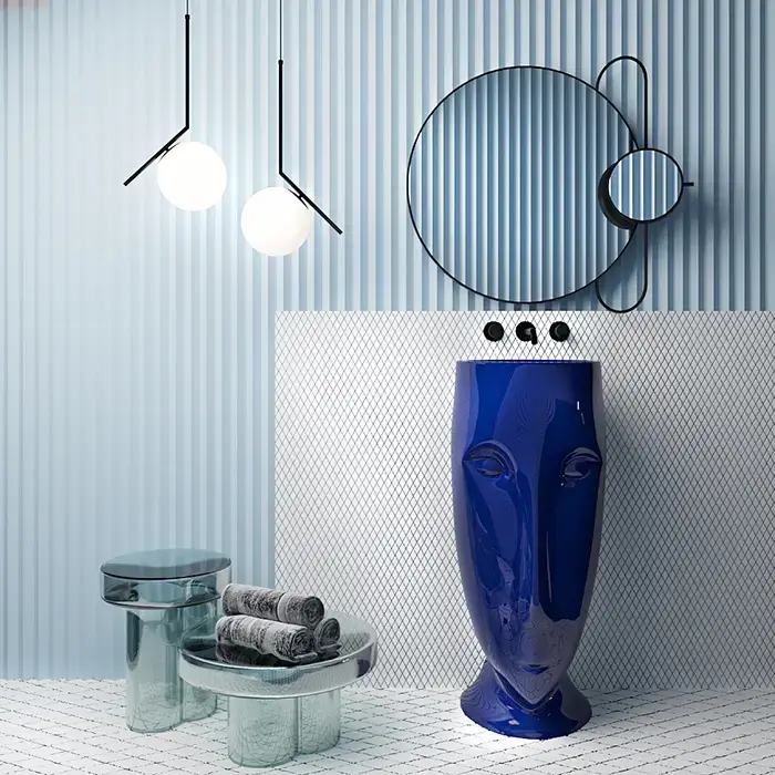 Kerasan Artwork Раковина свободностоящая "MOLOCO", с отверстием для слива в стену, цвет; Blu cobalto lucido