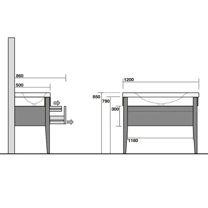 KERASAN Bentley База под раковину 3932/3935, 120х50см, в комплекте ножками (2 шт), цвет темный ясень (СПЕЦцена со склада!)