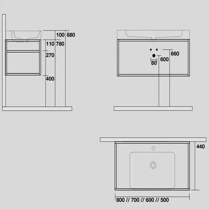 Kerasan Cento Стальная структура 70х45см, с раковиной на 1 отв, подвесная, с металлической полкой, цвет: черный матовый