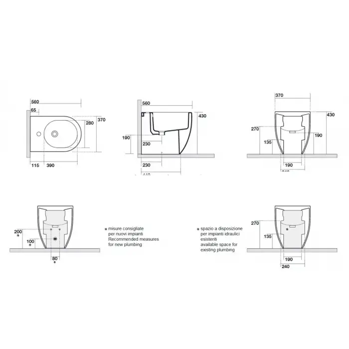 Kerasan Flo биде напольное приставное 56х37см, с 1 отв. под смеситель, с крепежом Wb5N в комплекте, цвет: белый