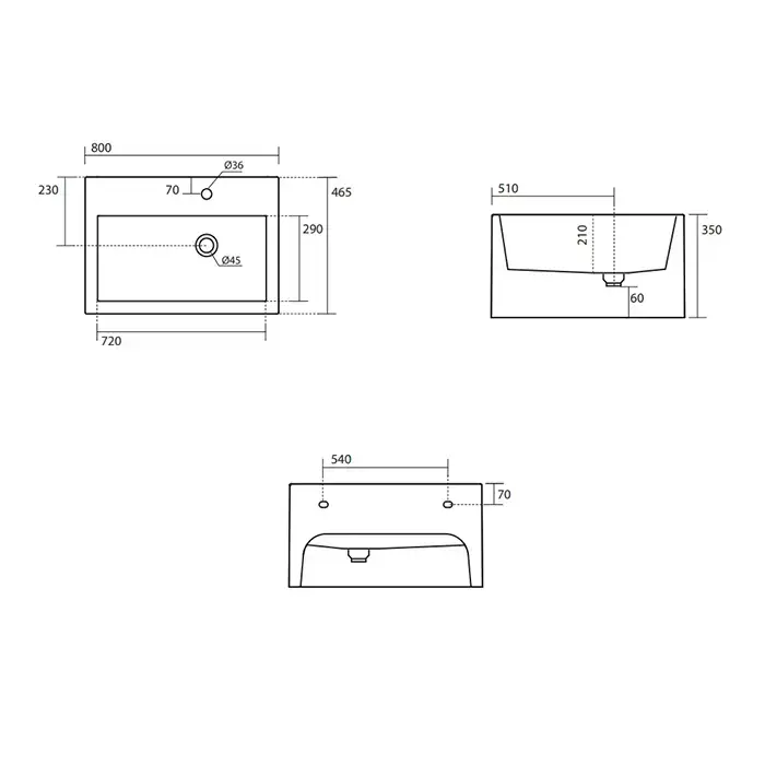 KERASAN KANAAL Раковина подвесная с 1 отв под смес, 80х46,5 см, цвет белый глянцевый