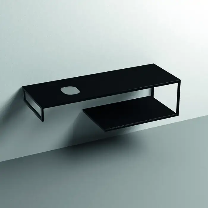 KERASAN LOUISE Структура металлическая подвесная 140 см, нерж сталь, с полкой, с отв под раковину,с полотенцедерж, цвет черный матовый