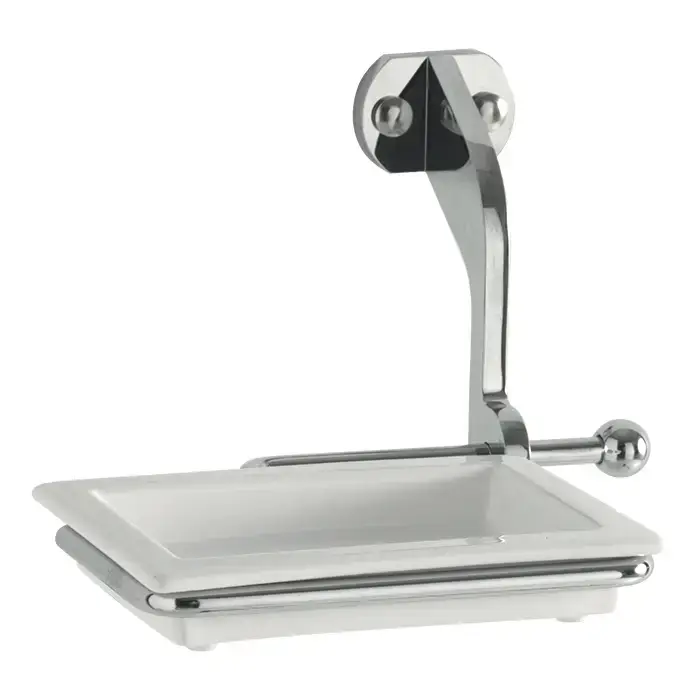 KERASAN Мыльница подвесная, мыльница керамика белая, держатель хром (СПЕЦ.ЦЕНА из наличия)