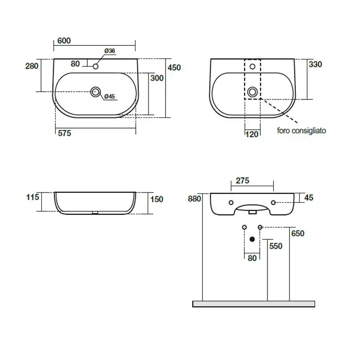 Kerasan Nolita Раковина подвесная/накладная 60х45 см, с 1 отв под смеситель, цвет белый глянцевый