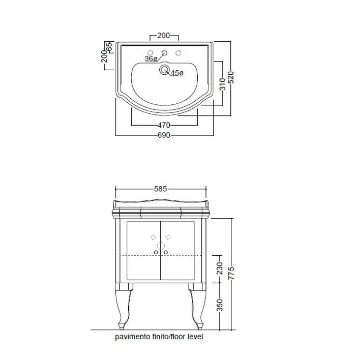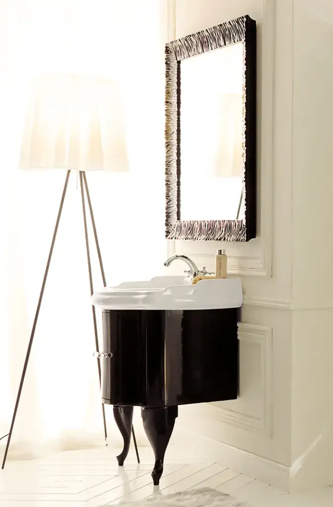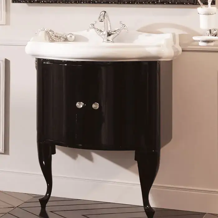 KERASAN Retro 7361К1, база 69см, под раковину 1046, цвет: черный глянцевый, ножки: черные, ручки: кристалл/кольцо-хром