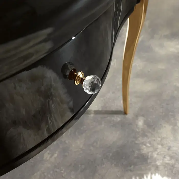 KERASAN Retro 7363K4, база 100см, под раковину 1050, цвет: черный глянц, ножки (арт.736291):золото, ручки: кристалл/кольцо-золото (упаковка-2 коробки)