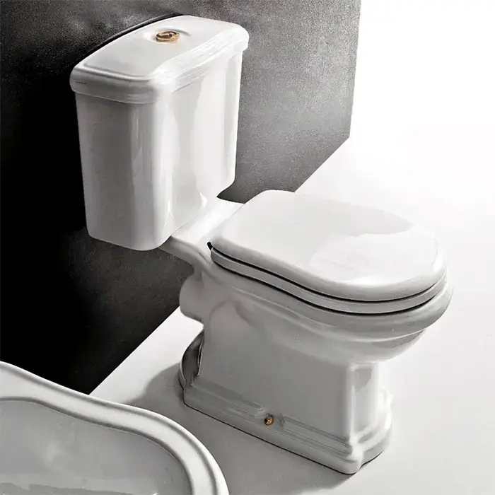 Kerasan Retro Унитаз 72х38.5см., моноблок, слив в стену, цвет: белый/золото