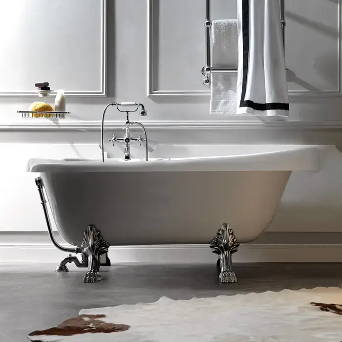 KERASAN Retro Ванна акриловая 170х77см, цвет белый, ножки, сифон и слив-перелив в комплекте, цвет хром