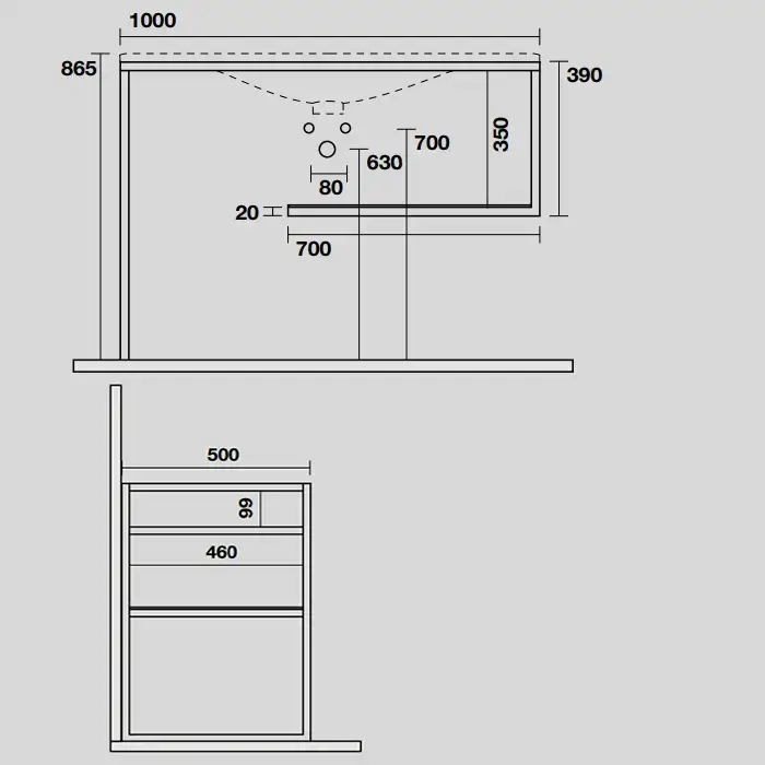 TW Shape комплект подвесной мебели 100х50см, с раковиной, с 1 выдвиж. ящиком с механизмом push-to-open, цвет: серый матовый RAL7016