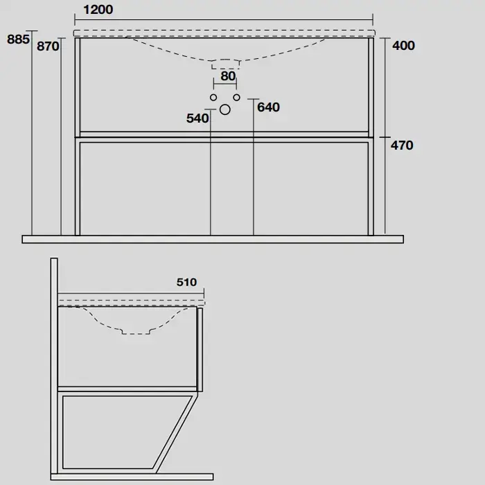 Kerasan Shape Louise Металлическая структура для раковины 102х52см, напольная, цвет: черный матовый