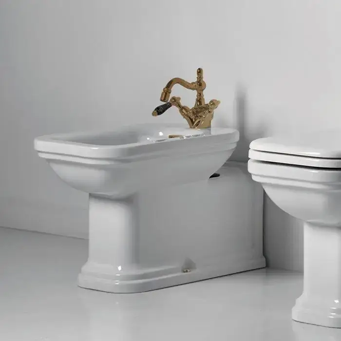 Kerasan Waldorf Биде напольное пристенное удлиненное "Prolungato" 65х37см с 1 отв. под смеситель, белое, цвет заглушки - хром (Заказ по запросу!)