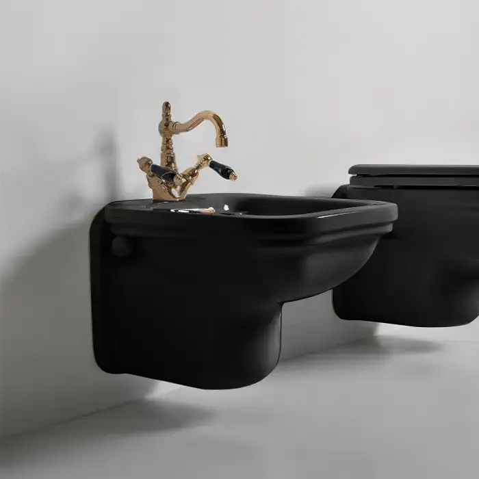 Kerasan Waldorf Биде подвесное с 1 отв. под смеситель 55х37см, цвет: черный, заглушка хром