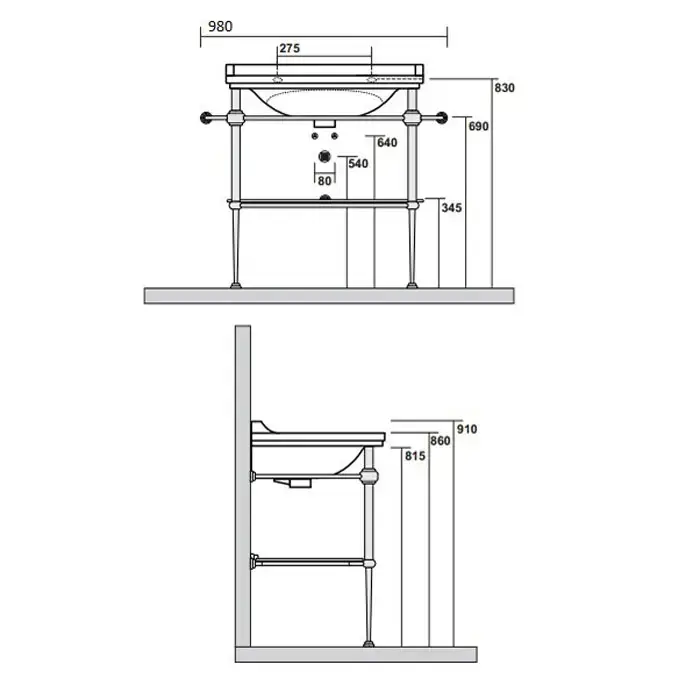 Kerasan Waldorf Металлическая структура для раковины 80см, со стеклянной полочкой, цвет золото (из 2-х коробок: арт. 919791+920291 и 920001)