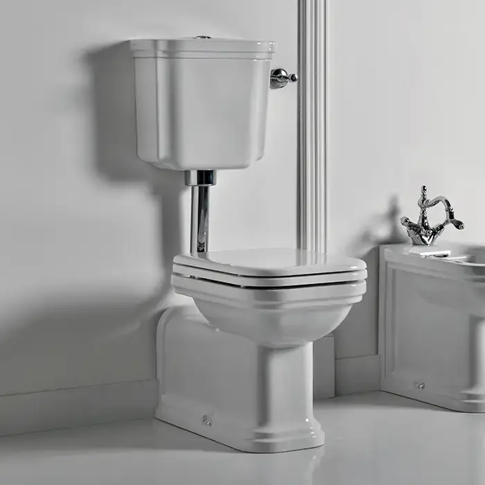 Kerasan Waldorf Унитаз напольный удлиненный 65х37см c низким бачком, трубой, цвет: белый/хром