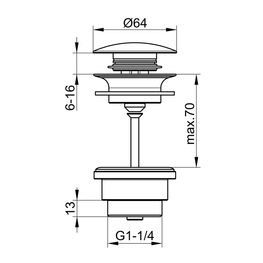 Keuco Armaturenzubehör Донный клапан Push-Open 1 1/4 дюйма, универсальный, цвет: хром черный 59902 130000