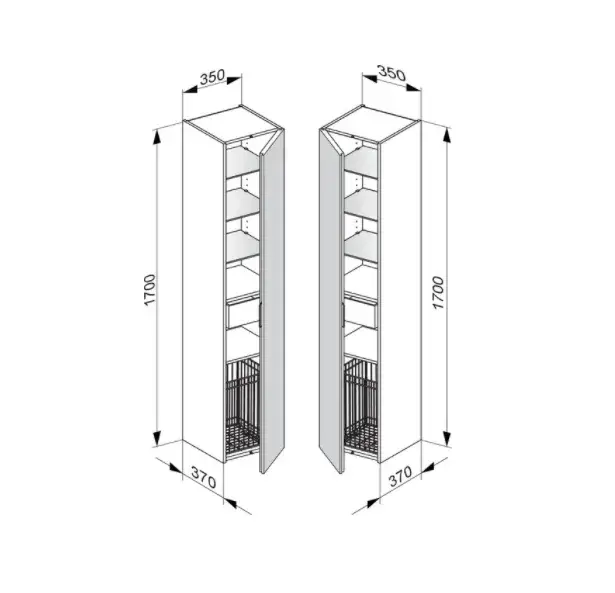 Keuco Edition 11 Шкаф-пенал подв., 3 стекл. полки, с корзиной 35x37x170h см, табачн. дуб 31331 850002