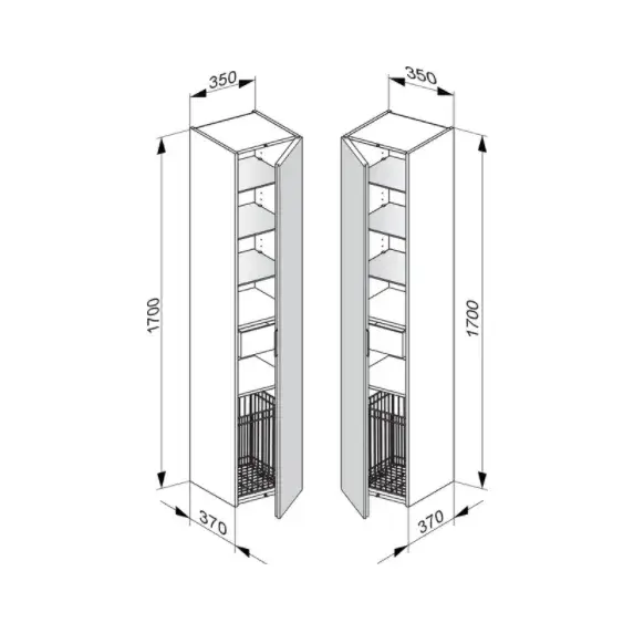 Keuco Edition 11 Шкаф-пенал подв., 3 стеклянные полки, с корзиной 35x37x170h см, черный 31331 570002