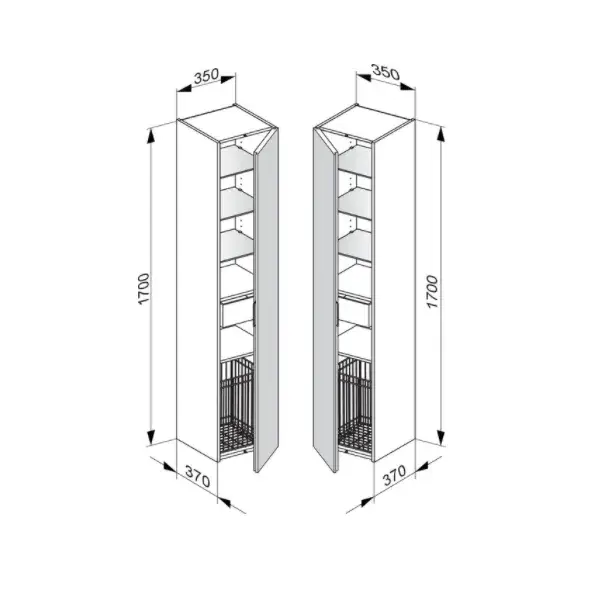Keuco Edition 11 Шкаф-пенал подв., 3 стеклянные полки, с корзиной 35x37x170h см, кашемир 31331 280002