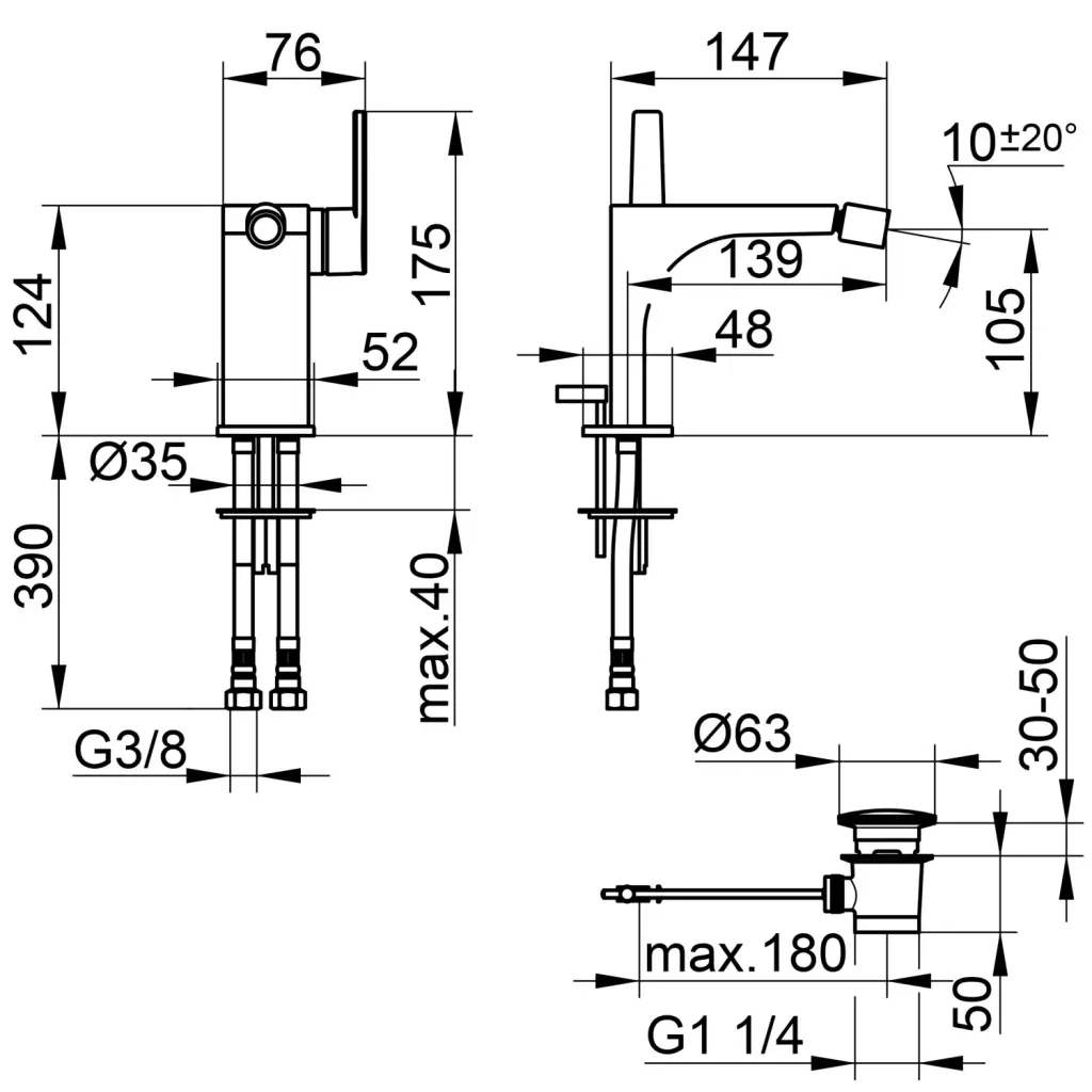 Keuco Edition 11 Смеситель для биде, с донным клапаном G1 1/4, цвет: нержавеющая сталь 51109 210000