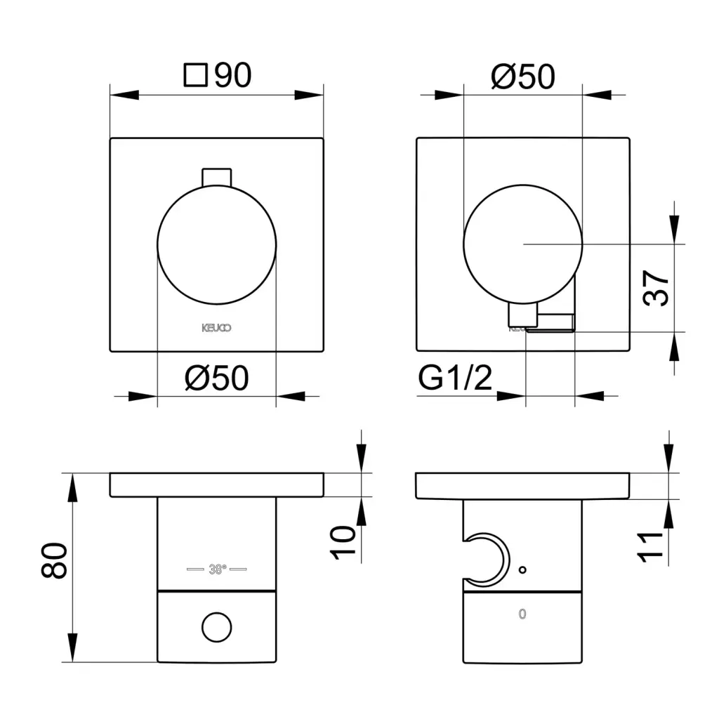 Keuco Edition 11 Смеситель для душа термостатический 2 потреб., встр., внешняя часть, цвет: латунь 51153 251222