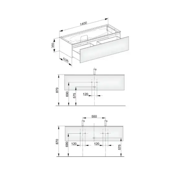 Keuco Edition 11 Тумба под раковину, подв. с внутр. подсветкой 140x53,5x35h см, черный 31361 330100