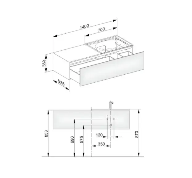 Keuco Edition 11 Тумба под раковину, подв. с внутр. подсветкой 140x53,5x35h см, антрацит 31166 110100