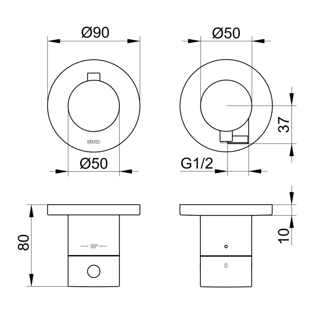 Keuco Edition 400 Смеситель для душа термостат., 2 потреб., встр., внешняя часть, цвет: титан черный 51553 351121