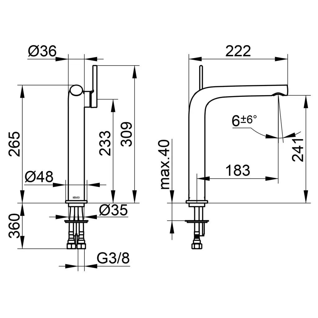 Keuco Edition 400 Смеситель для раковины 240, без д/к и гарнитура, излив 24,1 см, цвет:нерж. сталь 51502 210102