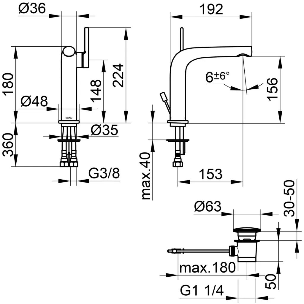 Keuco Edition 400 Смеситель для раковины рычажный 150, с д/к и гарнитуром для слива, цвет: латунь 51502 250000