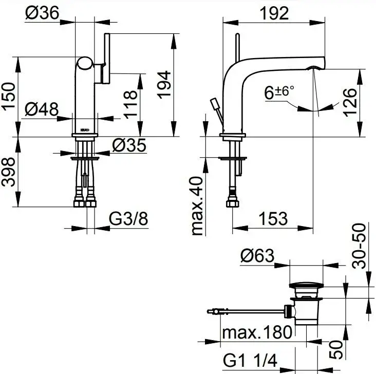 Keuco Edition 400 Смеситель для раковины рычажный, с донным клапаном, цвет: хром 51504 010002
