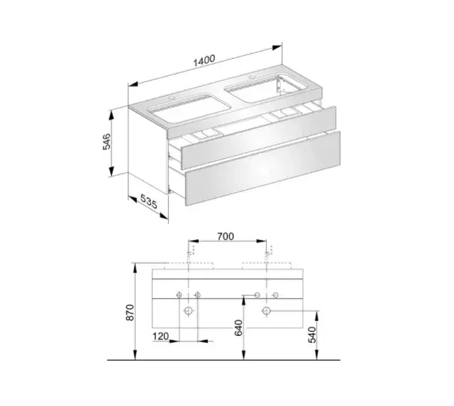 Keuco Edition 400 Тумба под 2 раковины, 2 ящика, подвесная 140x53,5x54,6h см, белый 31574 380100