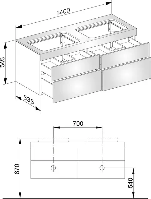 Keuco Edition 400 Тумба под 2 раковины, подвесная 140x53,5x54,6h см, цвет: трюфель 31575 140000