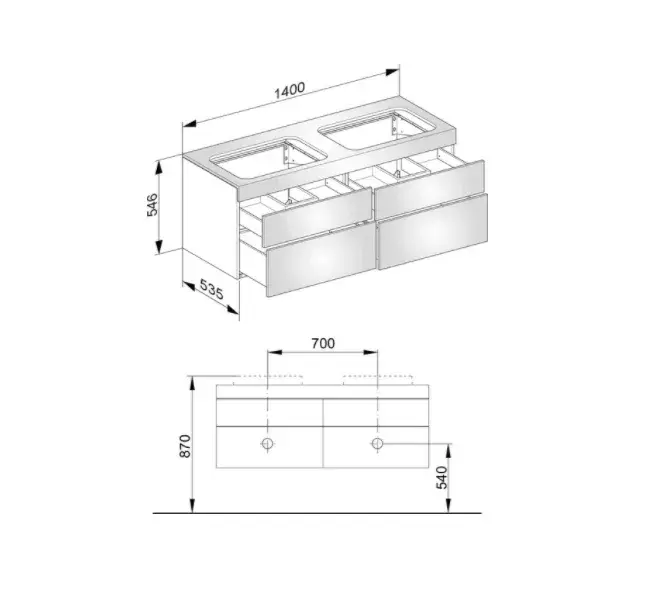 Keuco Edition 400 Тумба под раковину, подвесная 140x53,5x54,6h см, цвет: антрацит 31575 390100