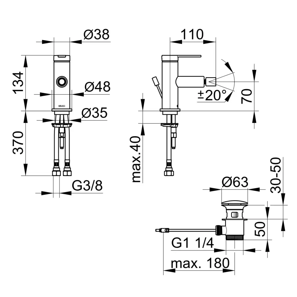 Keuco Ixmo Смеситель для биде, с донным клапаном G1 1/4, цвет: нержавеющая сталь 59509 213000