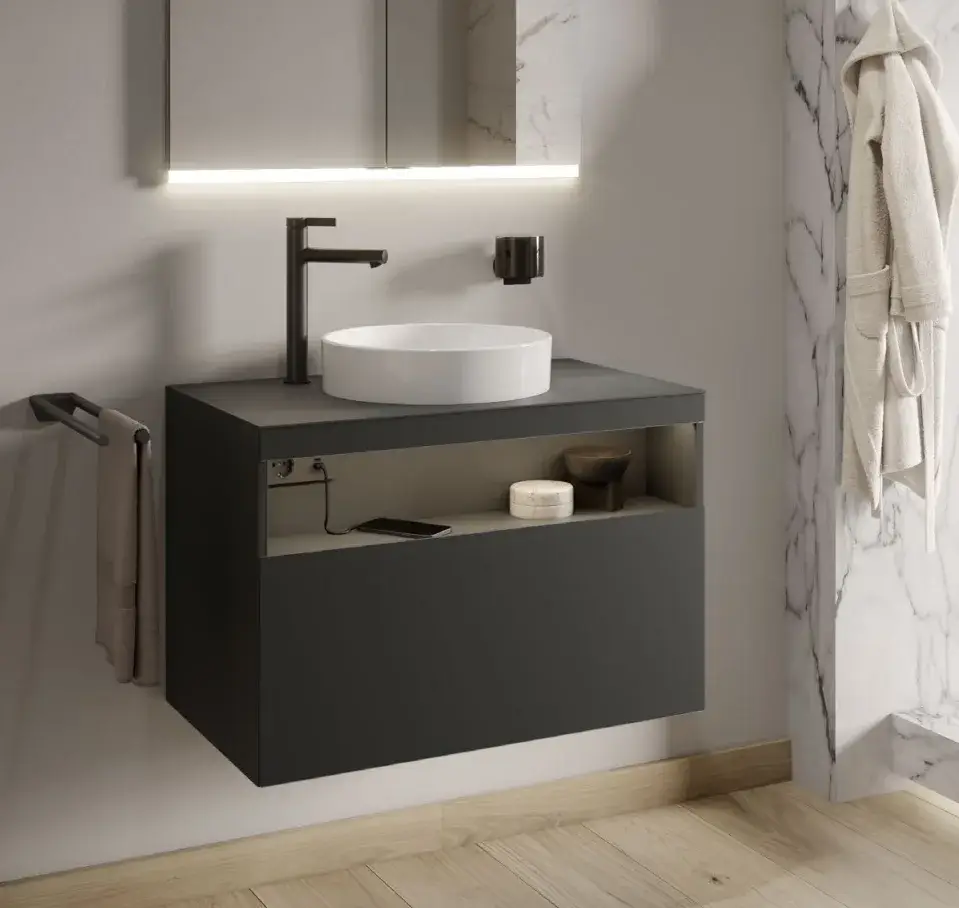 Keuco Ixmo Смеситель для раковины рычажный 130, с д/к и гарнитуром для слива, цвет: титан черный 59501 353001
