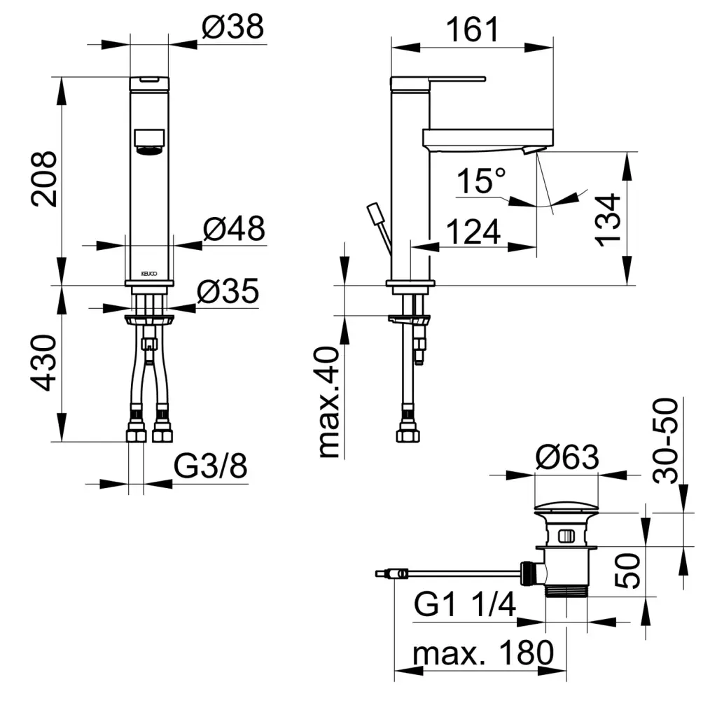 Keuco Ixmo Смеситель для раковины рычажный 130, с д/к и гарнитуром для слива, цвет: титан черный 59501 353001