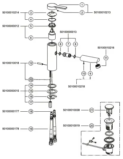 Keuco Plan Blue Cмеситель для раковины, однорычажный на 1 отв., излив 21 см, цвет: хром 53902 010103