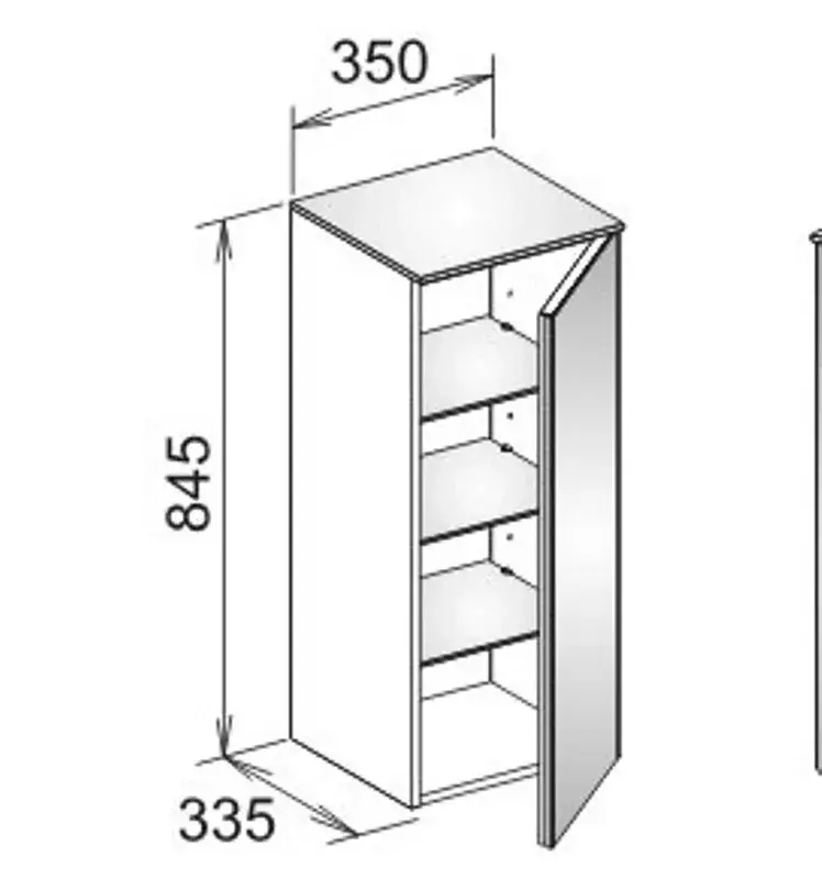 Keuco Royal Reflex Шкаф средний, 1 дверь, петли справа 33,5x35x84,5h см 34020 220002