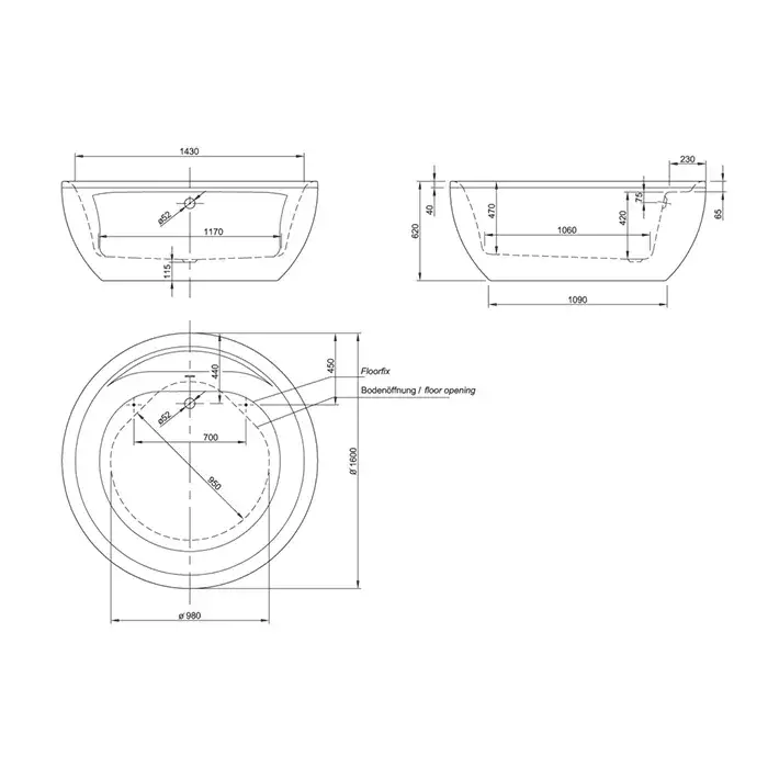 Knief Club Ванна из Acrylic отдельностоящая 160x62h см, без слива-перелива, цвет: белый 0100-075-07