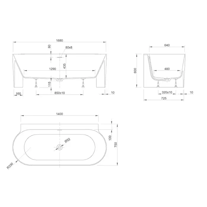 Knief Coast Ванна пристенная 170х75х60см, материал Stone, цвет: белый матовый