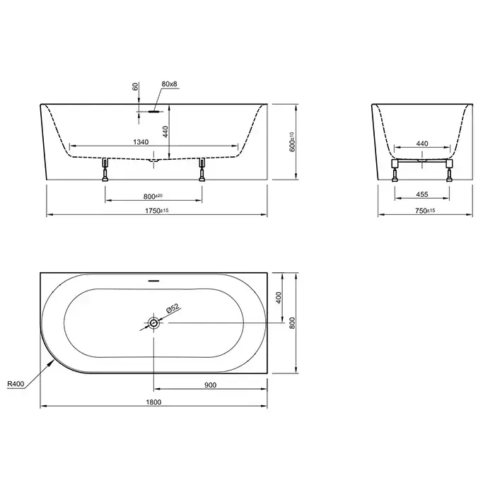 Knief Fresh XS Ванна отдельностоящая 155х80х60см.,слив щелевой, без слив-перелива, цвет: белый глянцевый