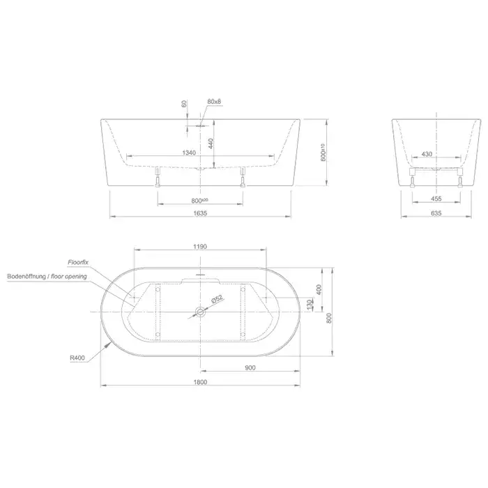 Knief Fresh Ванна из Acrylic отдельностоящая 180х80 см, слив по центру, цвет: белый матовый 0100-230 bi matt