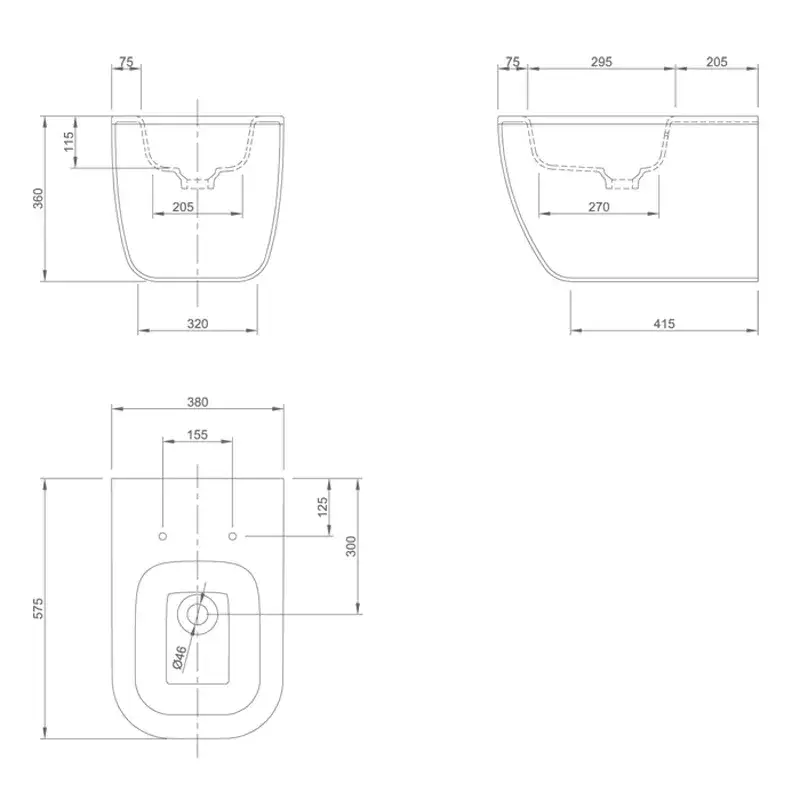 KNIEF Glam Биде напольное 58х39х42 см, с 1 отв под смеситель, цвет: белый