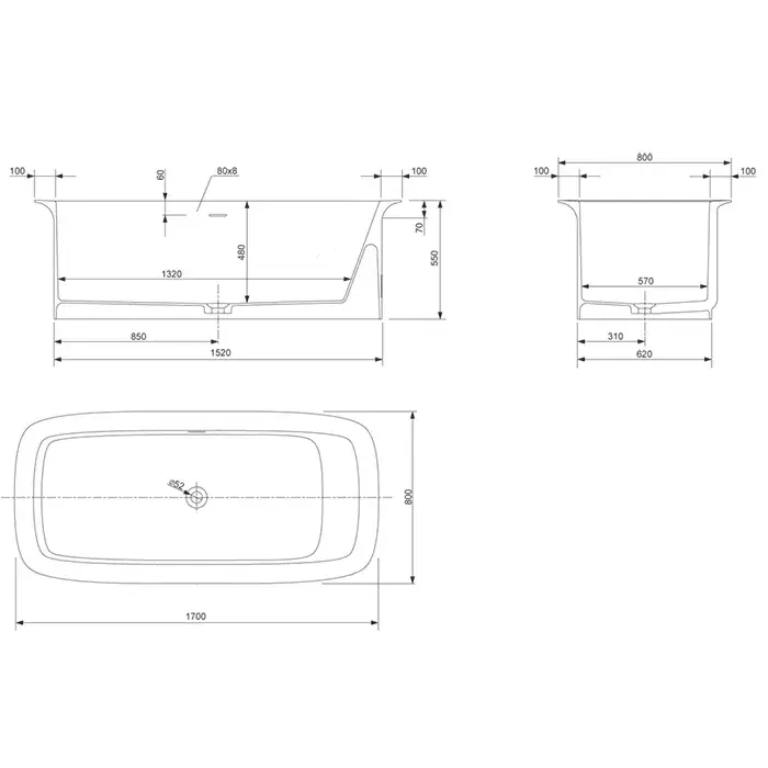 KNIEF Glam Ванна отдельностоящая 170х80x55см, с сливом-переливом, цвет: белый глянцевый