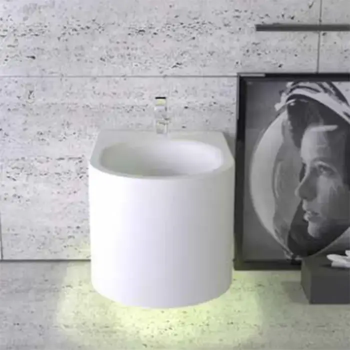 Knife Moon Раковина 55х45хh90см, напольная, с подсветкой, c выпуском белым и сифоном, слив в стену, цвет: белый матовый