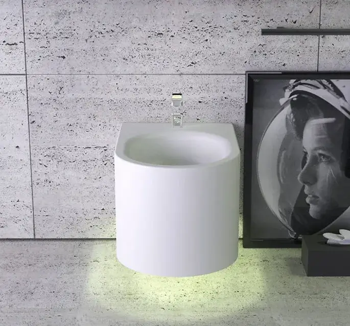 Knife Moon Раковина 55х45хh90см, напольная, с подсветкой, c выпуском белым и сифоном, слив в стену, цвет: белый матовый