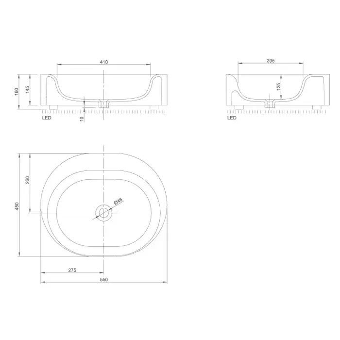 KNIEF Moon Раковина 55х45х16 см, без отв., накладная, с LED подсветкой, цвет: белый матовый