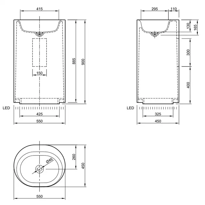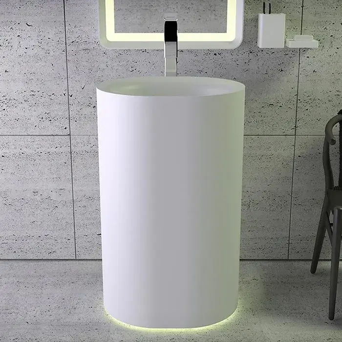 Knife Moon Раковина 55х45хh90см, напольная, с подсветкой, c выпуском белым и сифоном, слив в стену, цвет: белый матовый